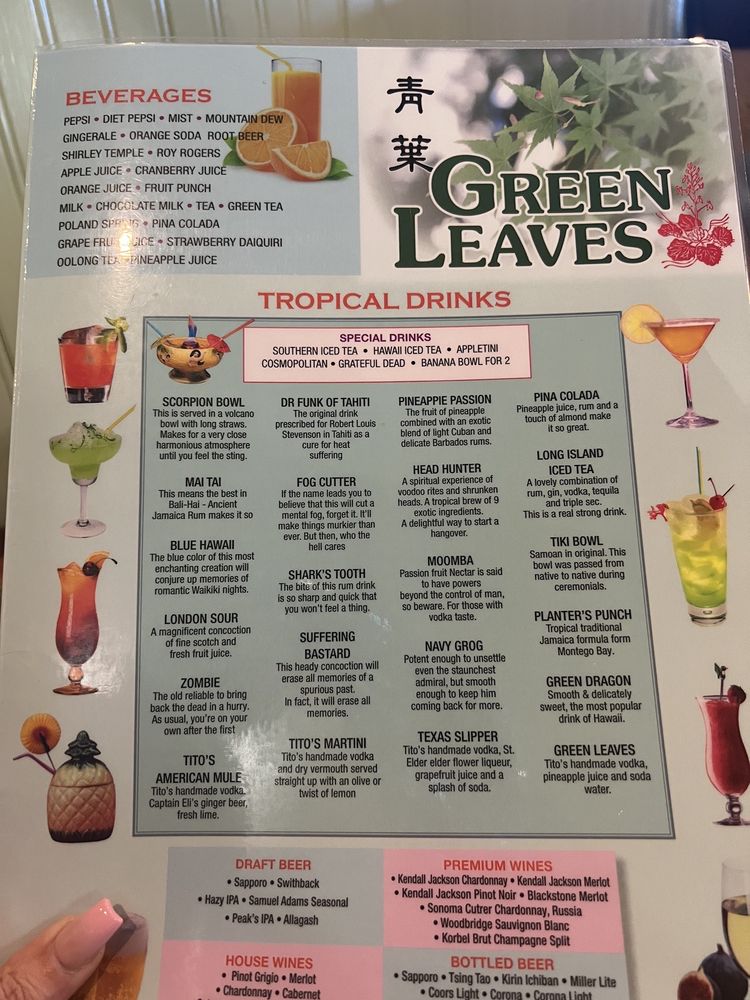 Welcome to Green Leaves, a sushi bar located in York, ME, offering a variety of vegetarian options and gluten-free dishes. With a cozy and casual atmosphere, Green Leaves prides itself on excellent service and delicious food. Customers rave about the friendly staff treating them like family and the top-notch service provided. The menu features a variety of sushi rolls, including options with unique ingredients like cream cheese and mango. The wontons in spicy peanut sauce are a must-try, described as a phenomenal dish that melts in your mouth. Green Leaves is the perfect spot for a lunch or dinner outing, with options for takeout, delivery, and catering available. Don't forget to try the house fried rice and sesame chicken for a truly satisfying meal. Visit Green Leaves for a culinary experience that will leave you wanting to come back for more.